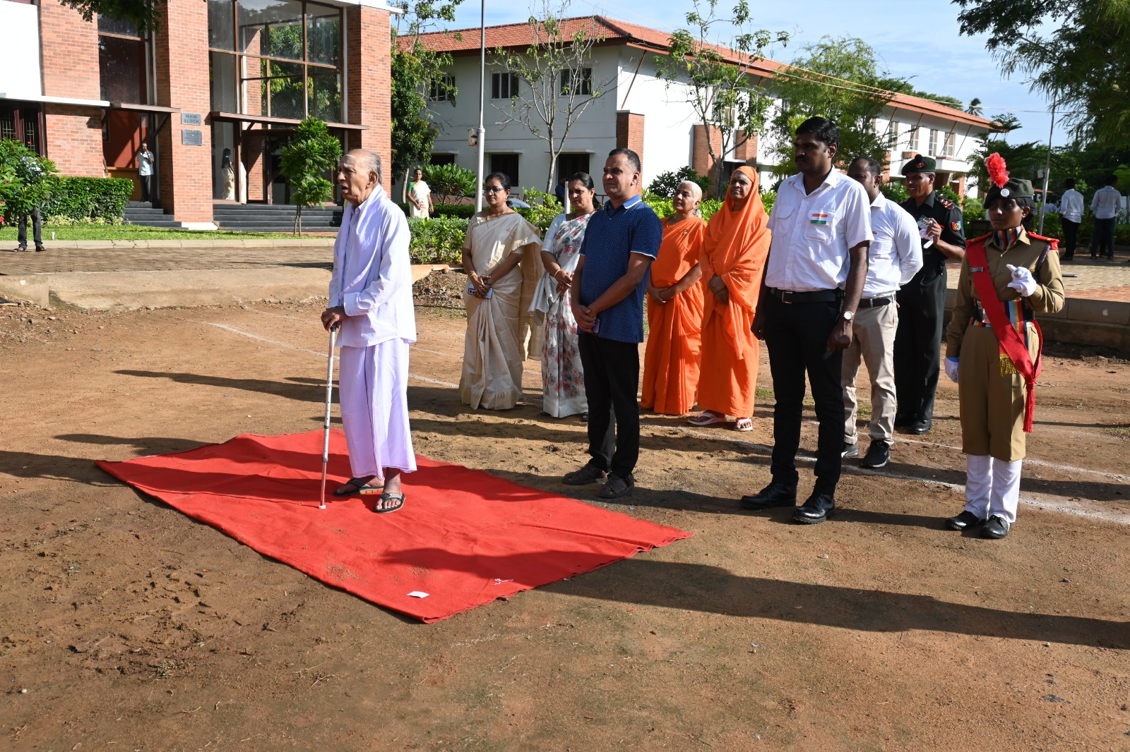 The event begins with "Tamizh Thai Vazhthu," a traditional Tamil invocation. A "Prayer Song" is performed, setting a solemn tone for the occasion. The flag is hoisted by Sri. M.G. Srinivasan, Correspondent of Swami Dayananda College, Manjakkudi, marking a significant moment in the ceremony. The "Flag Song" is sung by the School and College Music Choir, further emphasizing the patriotic theme.NCC Students participate in an "Independence Day Parade," showcasing their discipline and patriotism.Dr. V. Hema, Principal of Swami Dayananda College, Manjakkudi, delivers a "Welcome Address," setting the context for the event. The School and College Music Choir performs a "Group Song - Patriotic Song," reinforcing the celebratory atmosphere.Student speeches are delivered, with Lakshmipriya II BCA giving a speech in Tamil and Udhyamathi - VIII A delivering a speech in English. Sri. M.G. Srinivasan, Correspondent of Swami Dayananda College, Manjakkudi, gives a "Presidential Address," likely highlighting the significance of Independence Day."Founders Day Prize Distribution" takes place, recognizing achievements and contributions. Smt. R. Rukmani, Principal of Swami Dayananda Vidyalaya, Manjakkudi, offers a "Vote of Thanks," expressing gratitude to participants and attendees.The event concludes with the singing of the "National Anthem," a fitting end to the Independence Day celebrations.