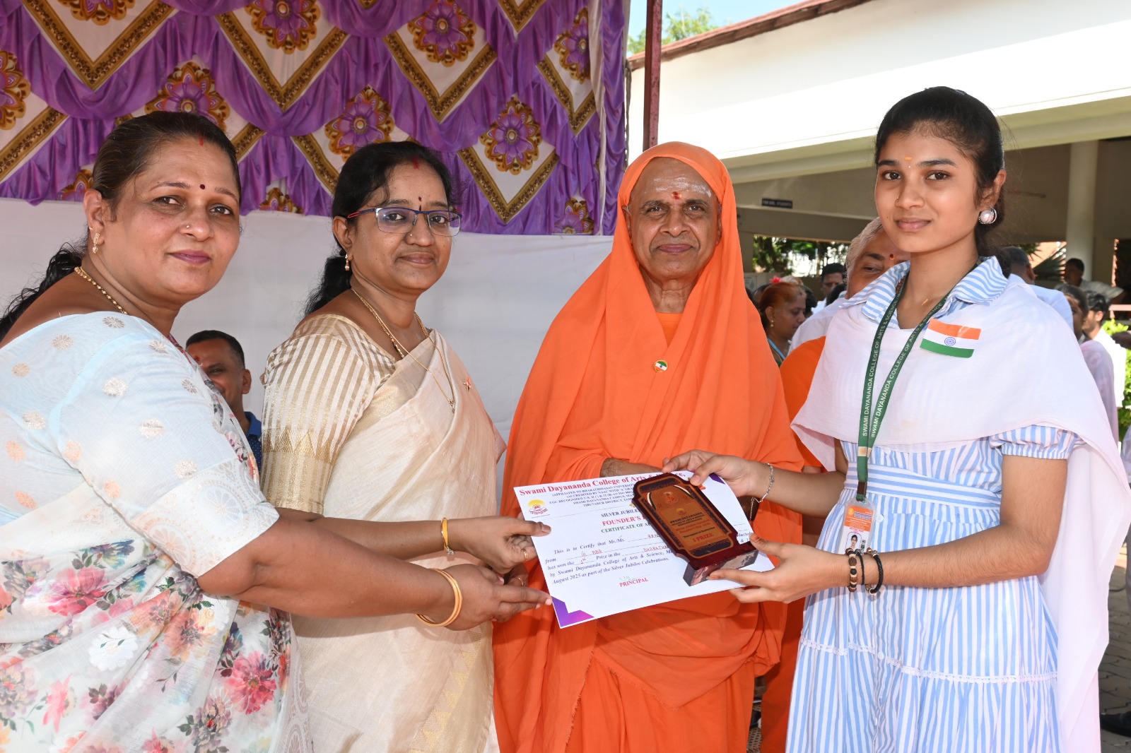 The Founder’s / Annual Day Celebration of Swami Dayananda Vidyalaya was held with grandeur on 18th August 2025 at the G.R. Auditorium. The theme of the celebration was “Five Elements of Nature”, highlighting the harmony between nature and human life. The program commenced at 1:30 p.m. with the Lighting of the Lamp by Chairperson and Managing Trustee Smt.Sheela Balaji mam, symbolizing knowledge and wisdom, followed by a soulful Prayer Song rendered by the school choir. The gathering was warmly welcomed by Smt. Rukmani ma'am, Principal, SDV, who highlighted the significance of the day. A Music Concert by the students created a serene atmosphere, blending melodious tunes with the theme of the five elements. This was followed by an Invocation Dance by students of Classes 10 to 12, which beautifully portrayed the spiritual essence of nature. The Cultural Program, performed by students of Classes 5 to 12, captivated the audience with vibrant performances on the theme “Five Elements of Nature”, including dances, skits, and musical presentations that enthralled the audience. After the cultural showcase, the Annual Report was presented by the Principal, highlighting the academic progress, extracurricular achievements, and milestones of the institution during the year. Followed by Prize Distribution Ceremony was held, begins with meritorious students award along with cash prize Rs. 5000 /- for Board toppers best boy and best girl in academics 2024-2025 were honored by Smt. Sheela Balaji, Chairperson & Managing Trustee, SDET. This was followed by the Presidential Address by Smt. Sheela Balaji ma'am, who inspired the students with her motivational words. The celebration concluded with a heartfelt Vote of Thanks proposed by Shri S. Maruthivasan, Senior coordinator followed by the National Anthem. The day was a memorable one, filled with joy, pride, and inspiration, reflecting the vision of the founder and the collective achievements of the institution.