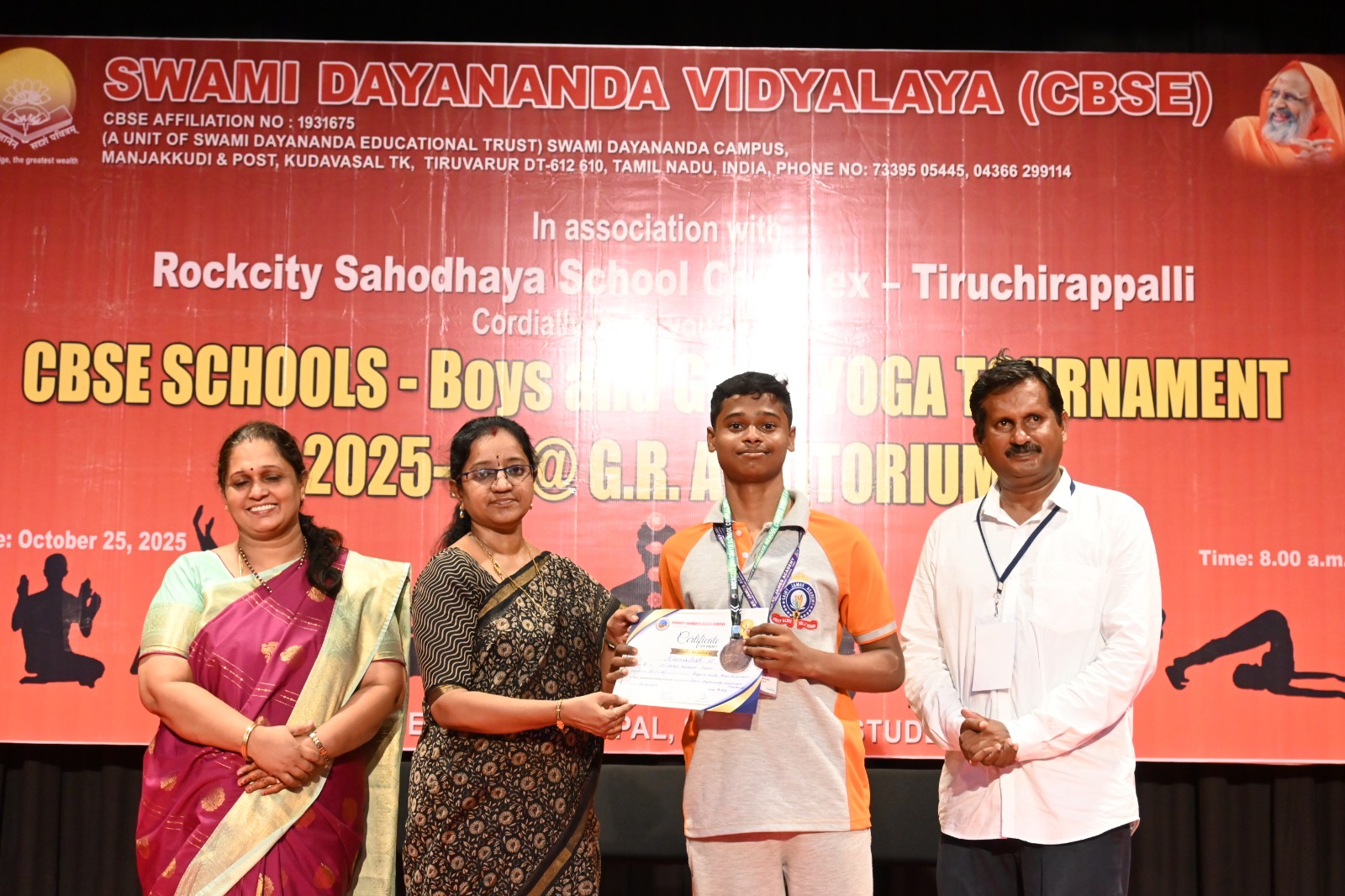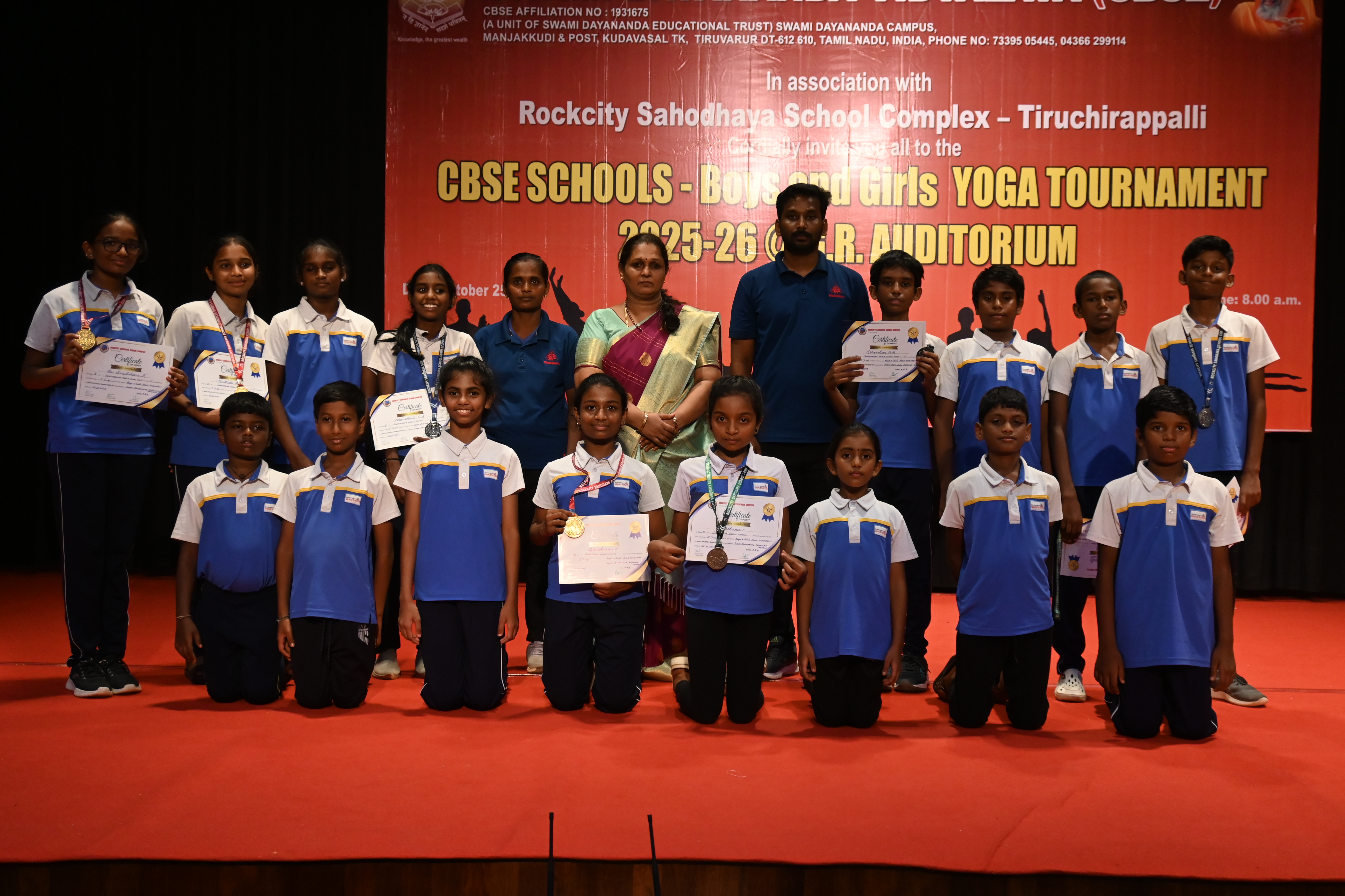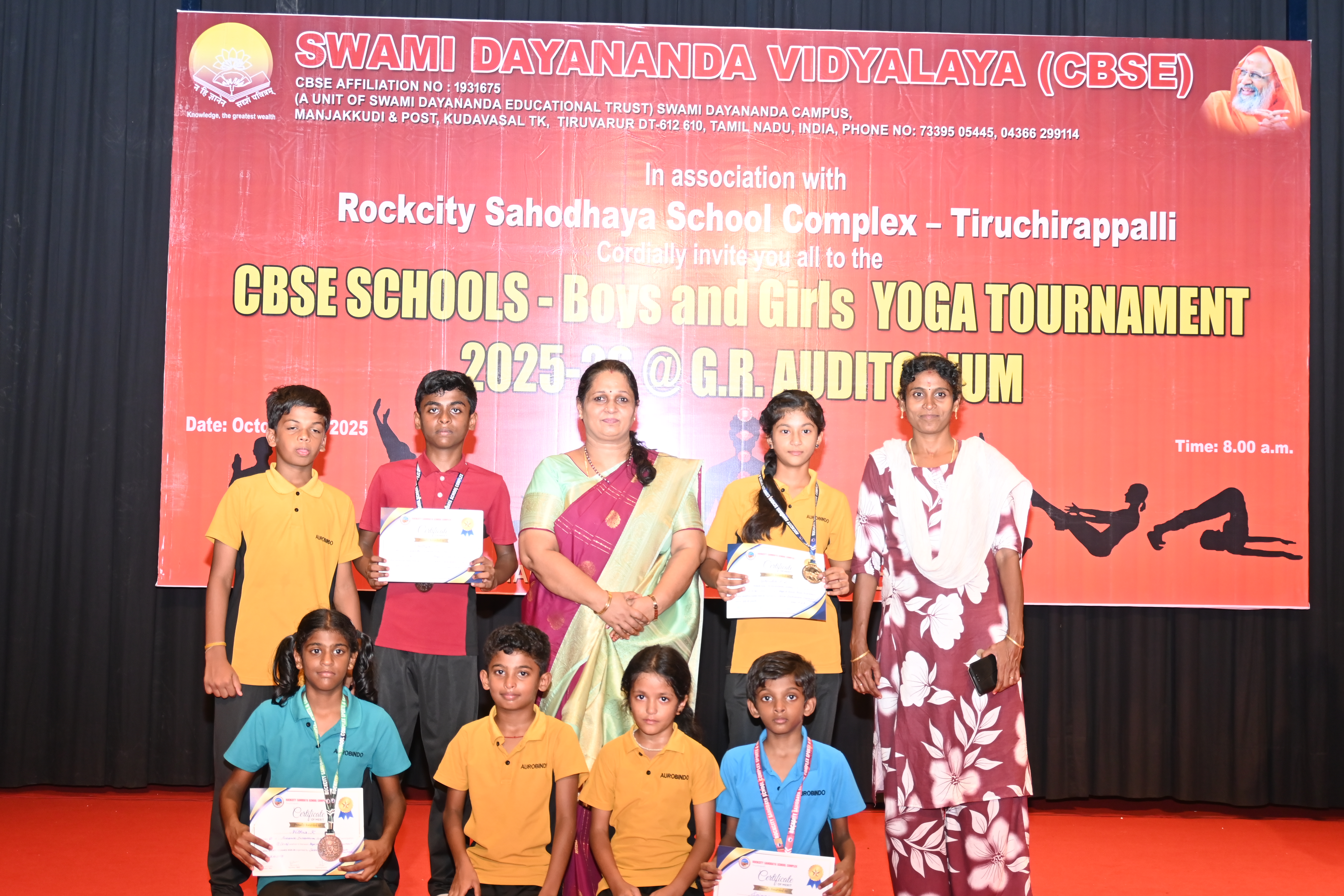 RSSC& SDV COMBINELY HOSTED YOGA INTER SCHOOL COMPETTITION FOR BOYS AND GIRLS HELD AT SWAMI DAYANANDA VIDYALAYA, MANJAKKUDI. OVERALL 21 SCHOOLS AND 160 STUDENTS PARTICIPATED. SCHOOLS FROM TRICHY,TANJORE,MANNARGUID AND KARAIKAL TAKE PART IN THIS EVENT. MR.PATTABIRAMAN SDAT THIRUVARUR GRACED THE EVENT AS CHEIF GUEST. FIRST 3 PLACES AWARDED WITH MEDALS AND CERTIFICATES. FOR ALL PARTICIPANTS E-CERTIFCATE SENT THROUGH MAIL.