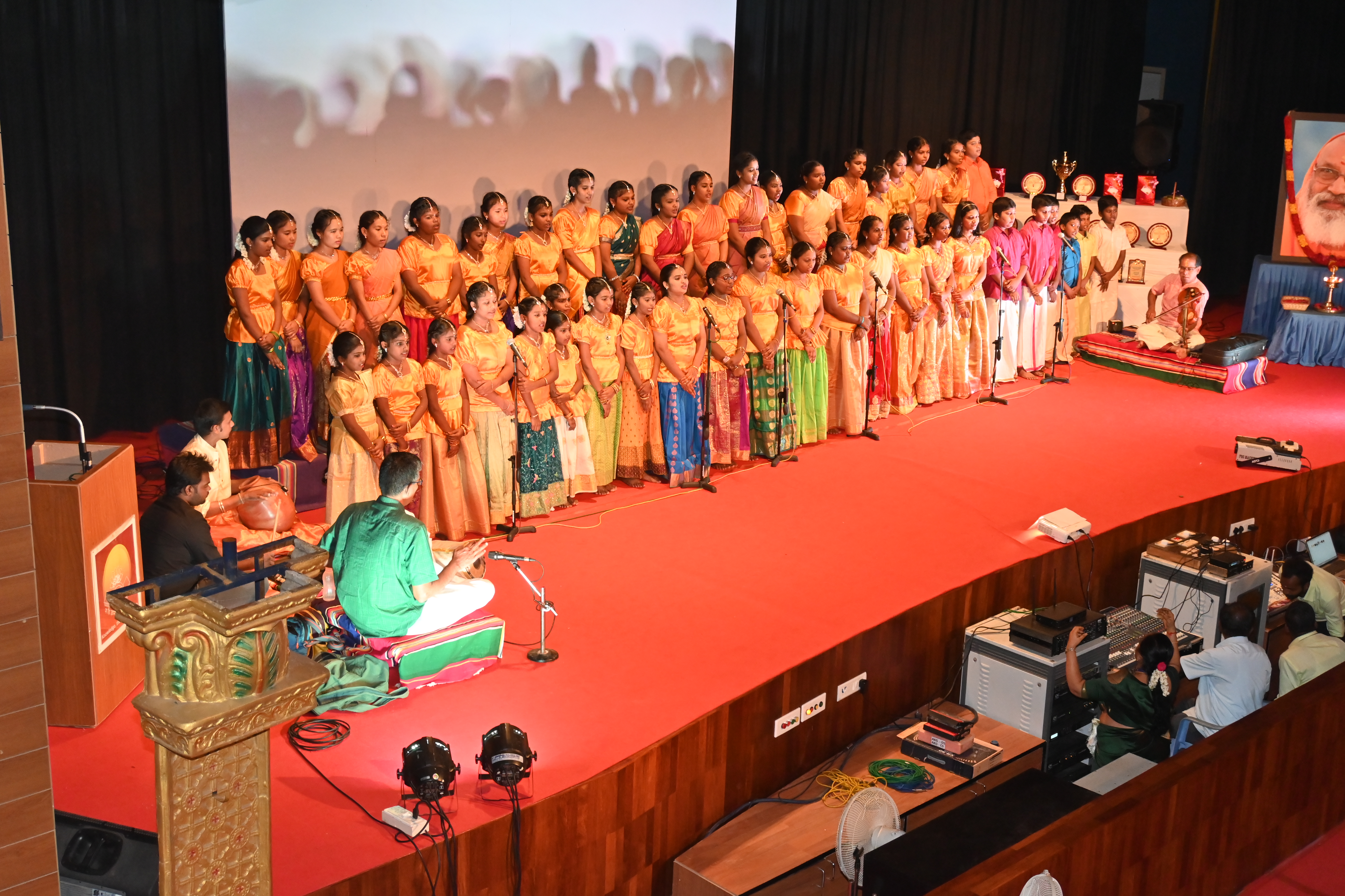 School prayer song and Dayananda Panchakam rendered by school choir group and Guru Sthothram was recited by the students, school music teacher Ms. Abirami sung a song about Guru. School Sanskrit Master Mr. Krishnan delivered the story of Krishna Dwaipayana and how he called as Veda Vyasa, the value of gurus and the importance of Pujyasri Swamiji sayings.