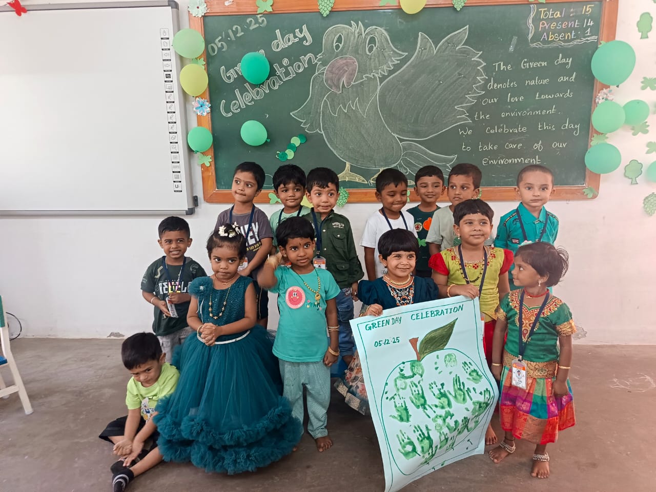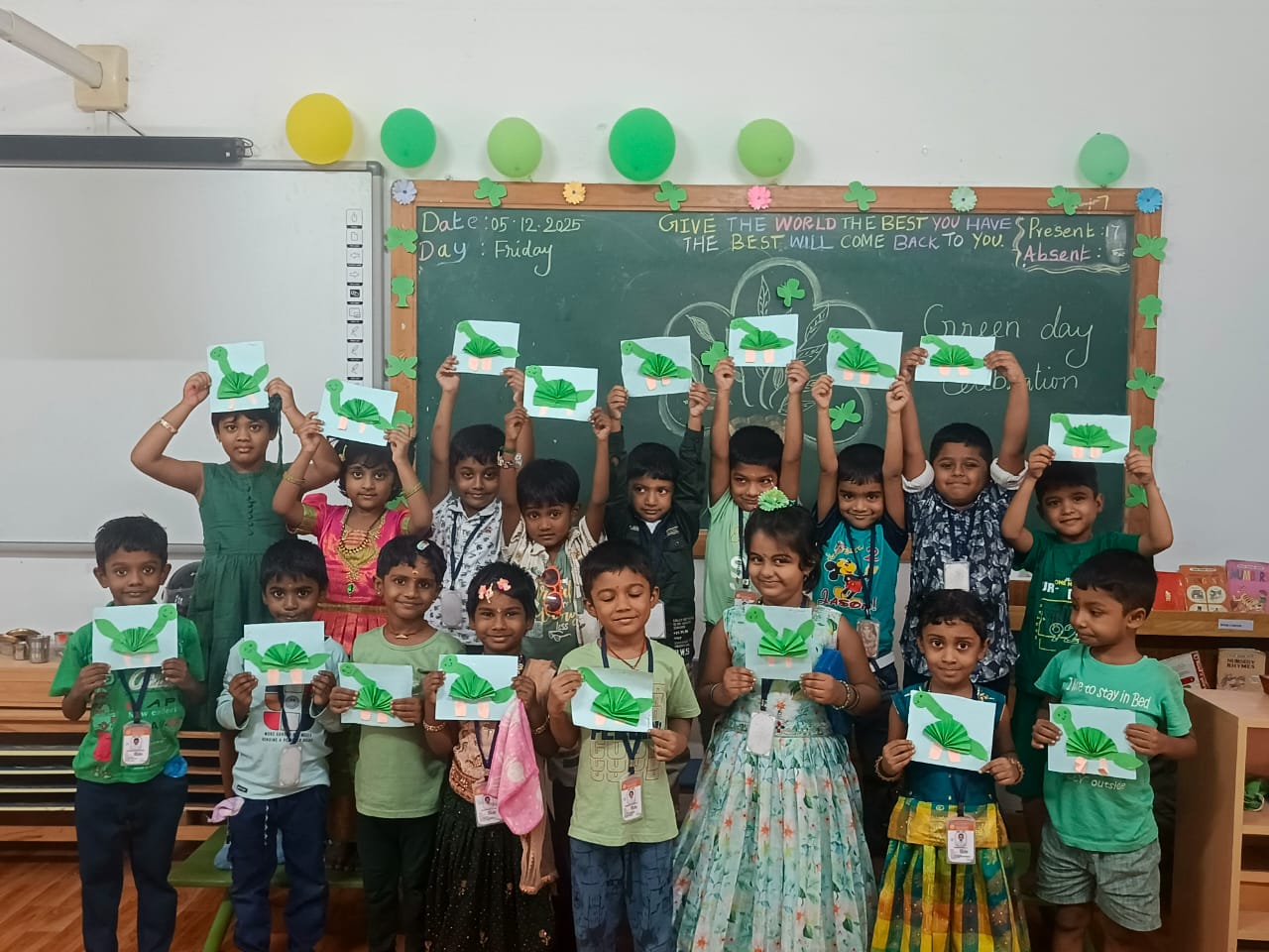 Date: 05.12.2025 (Friday) The Montessori Department of Swami Dayananda Vidyalaya (CBSE) celebrated Green Day on 05.12.2025 with great enthusiasm. All classrooms were beautifully decorated with a green colour theme, creating an engaging and vibrant environment for the young learners. The programme began with the school prayer, during which KG students delivered a short speech highlighting the importance of the colour green and its connection to nature. A variety of creative and hands-on activities were conducted for the children:Overall, the Green Day celebration helped the students appreciate nature, develop creativity, and enjoy a meaningful learning experience.